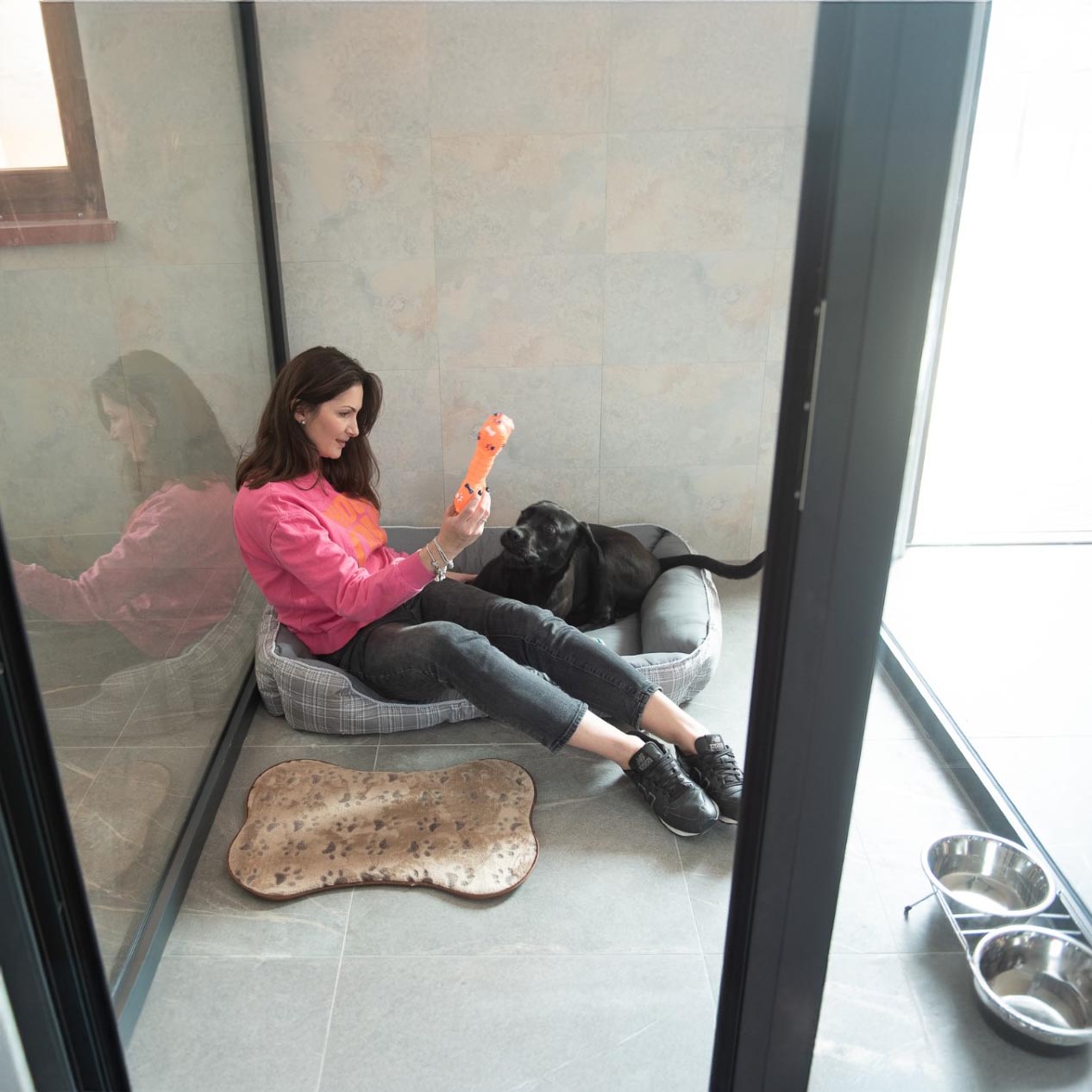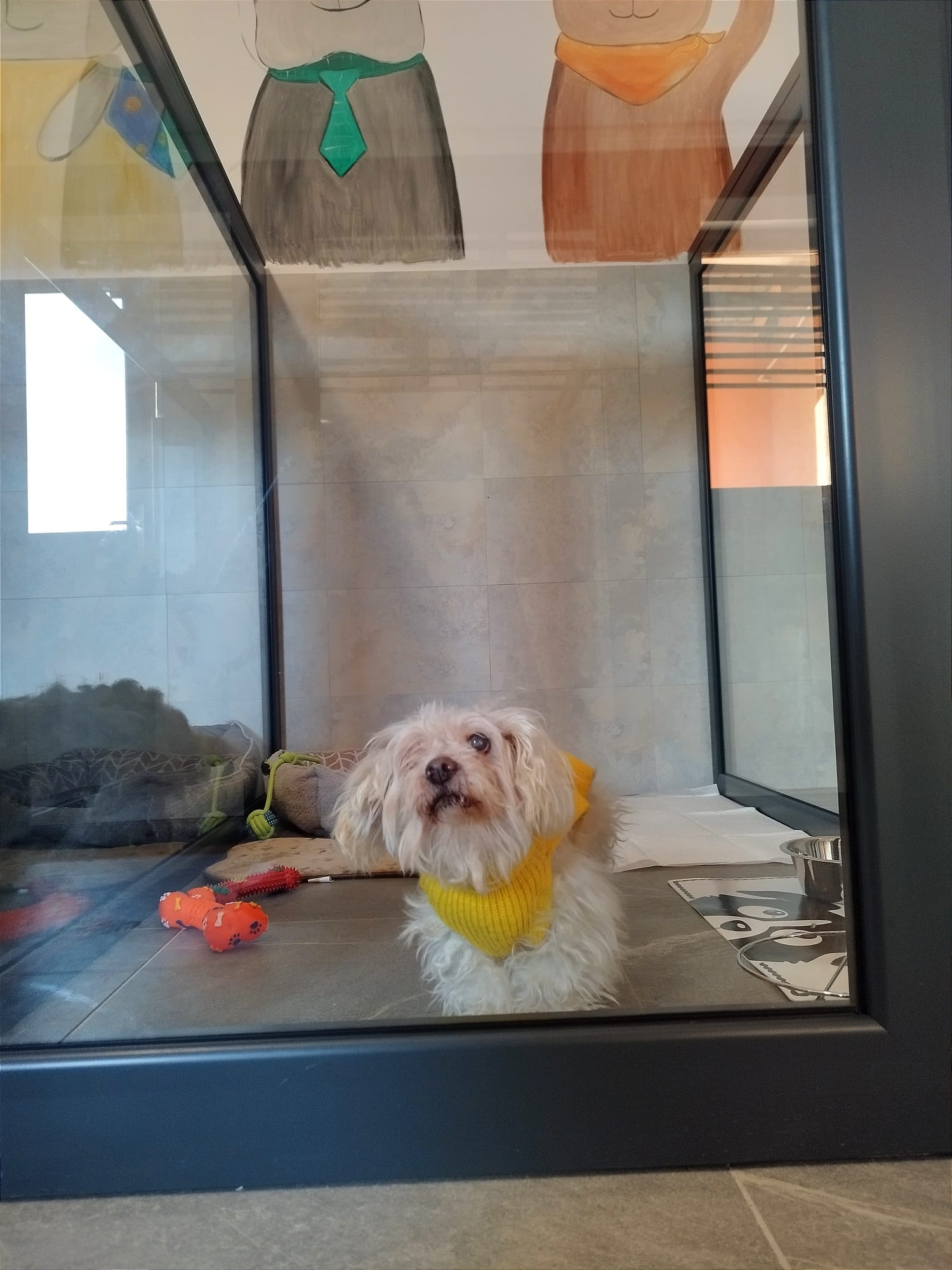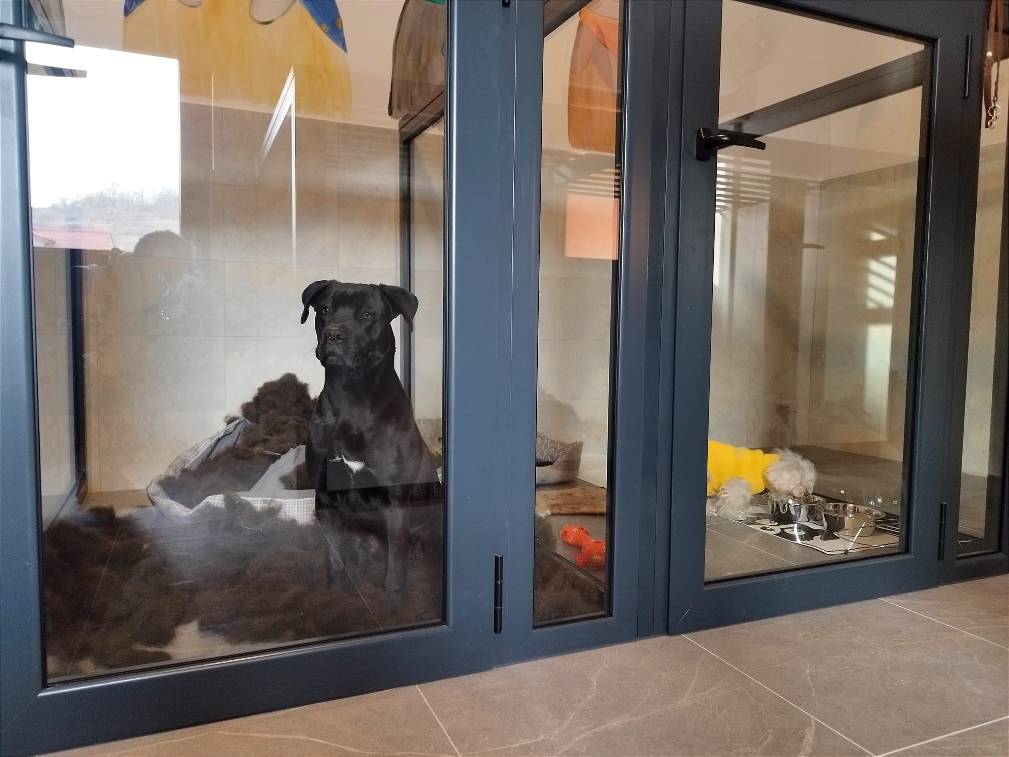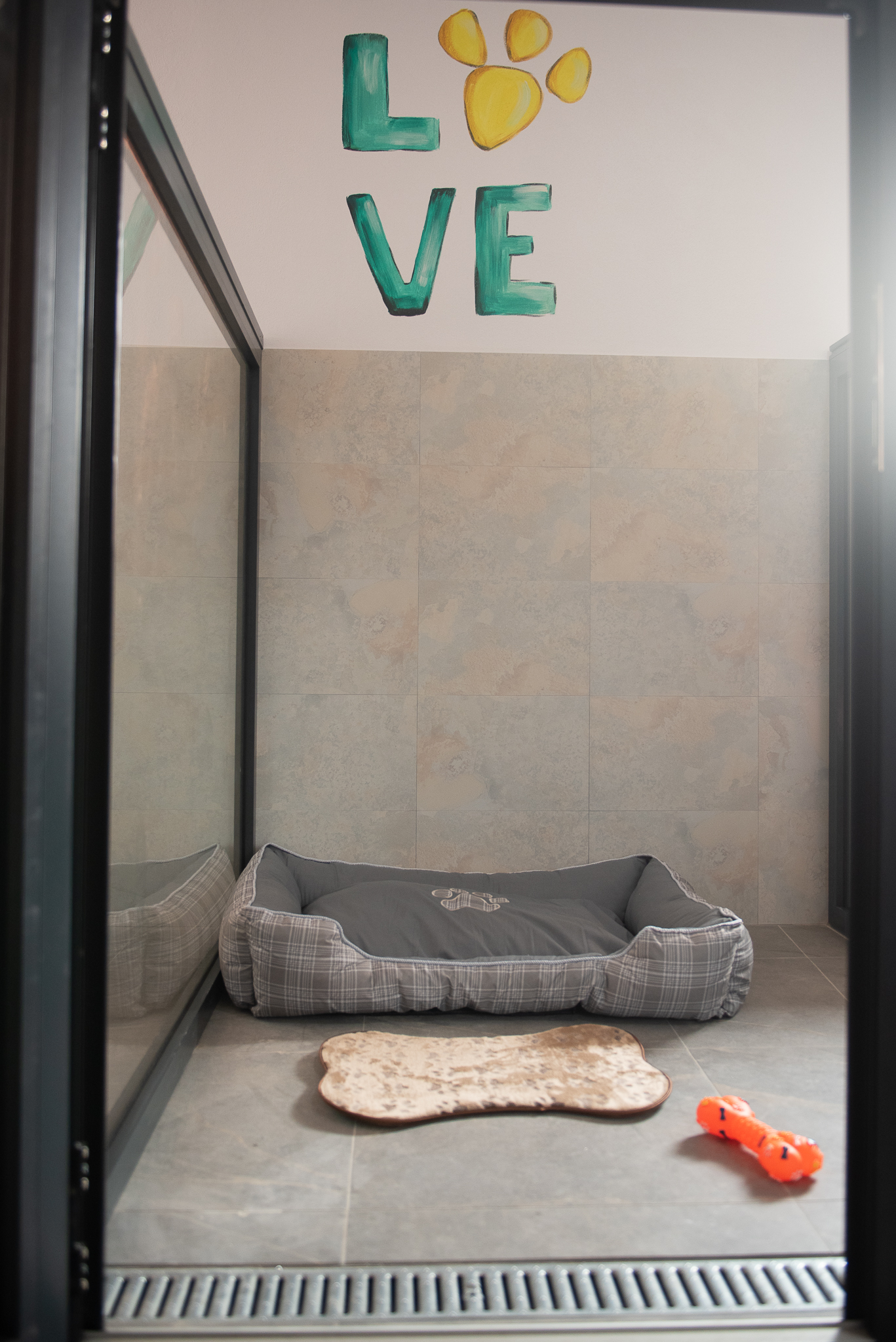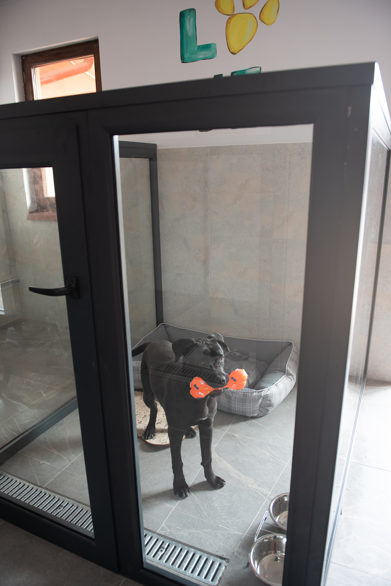 Camerele hotelului pentru câini sunt dotate cu sisteme de încălzire și ventilație, asigurând confortul optim pe tot parcursul anului. Fiecare câine beneficiază de un spațiu individual, delimitat de pereți de sticlă, care permite vizibilitatea între câini, fără riscul de a se răni.